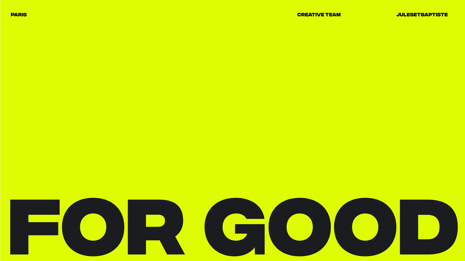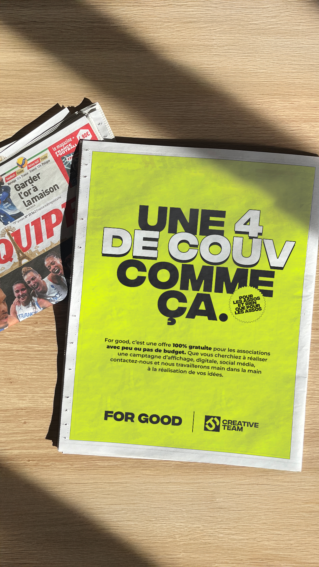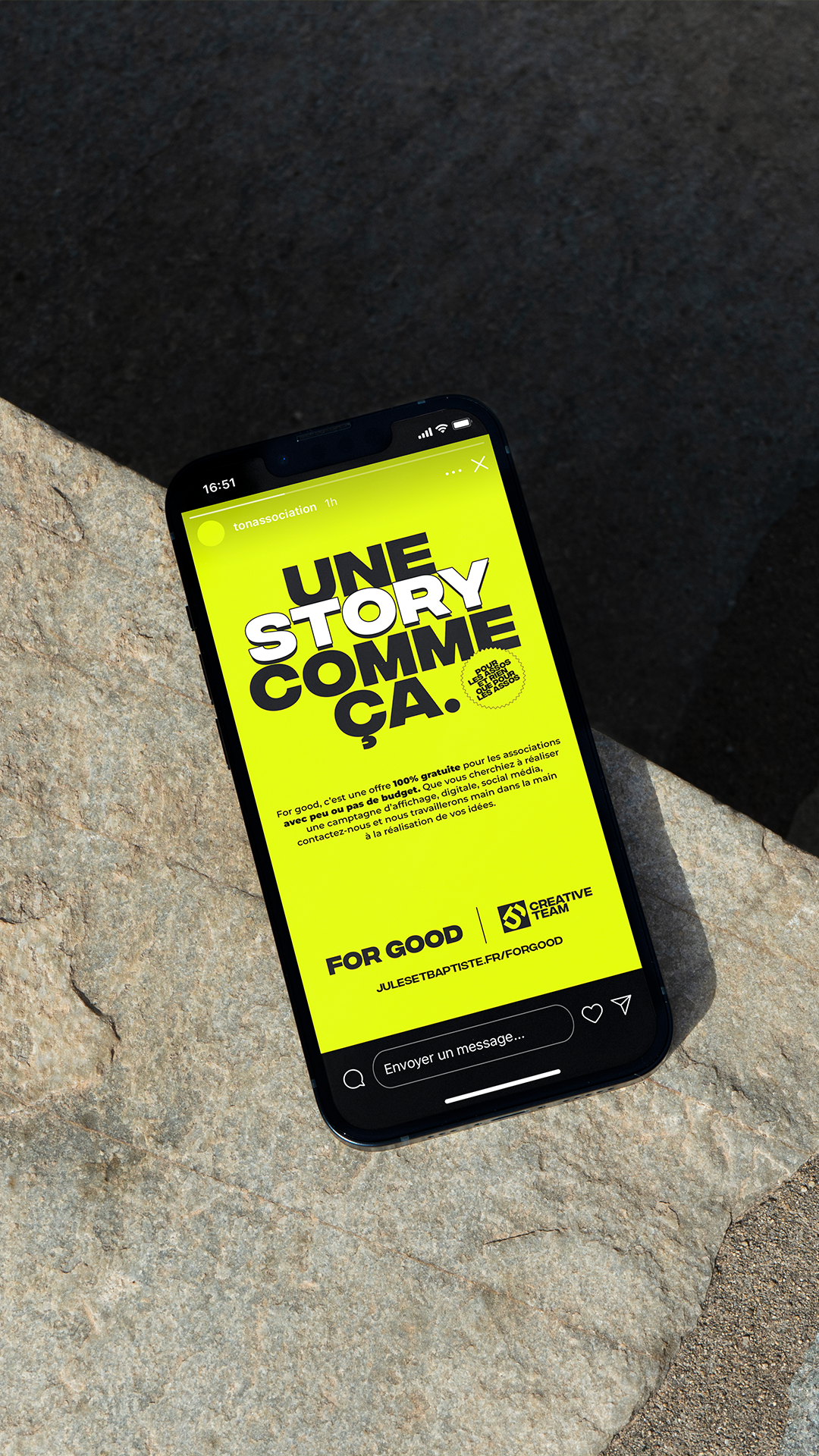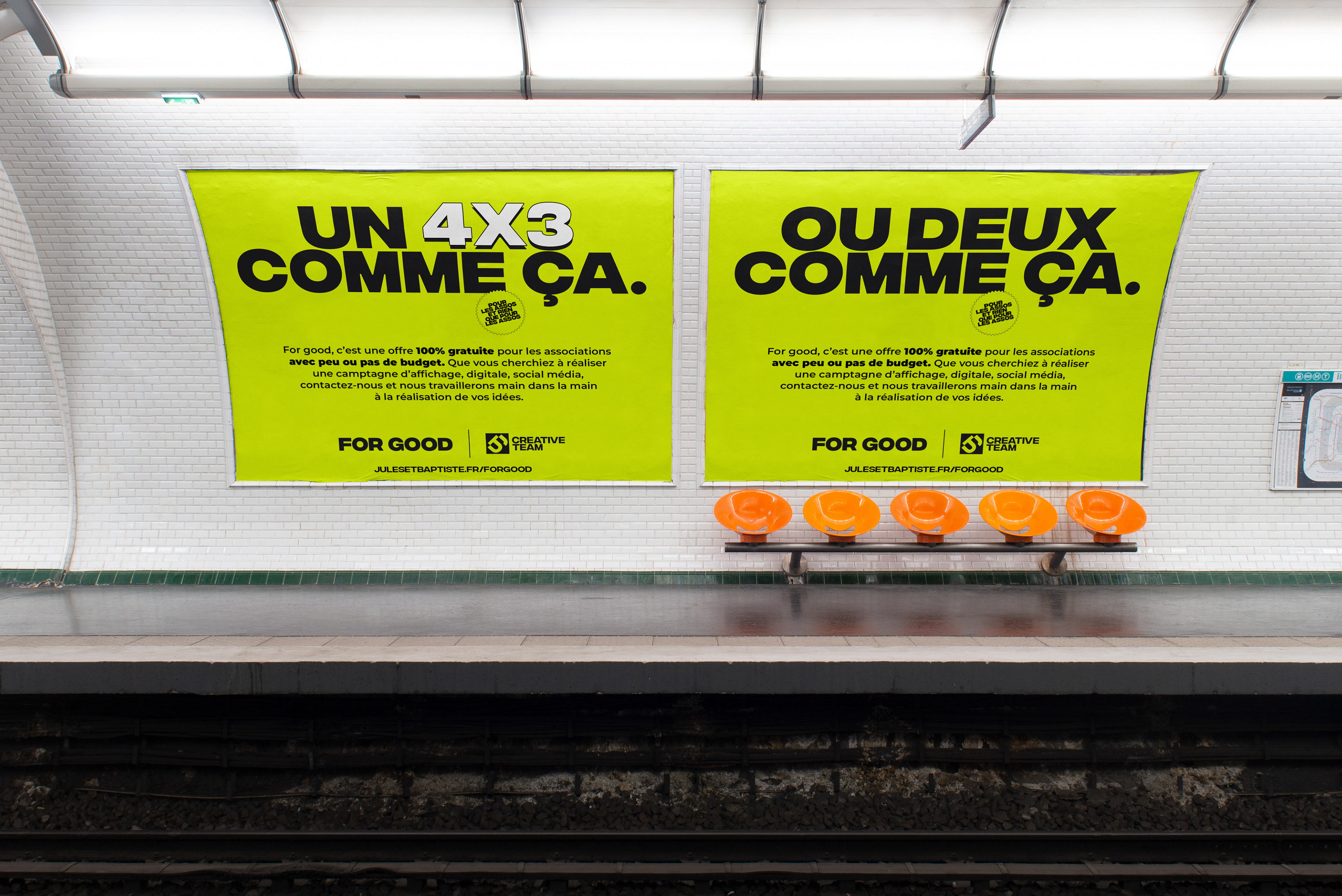 For good, c’est une offre 100% gratuite créée avec mon Concept Rédacteur, Baptiste Richardet avec notre site we de team créatif JULESETBAPTISTE pour les associations avec peu ou pas de budget. Le but est de pouvoir aider les associations à à réaliser une campagne d’affichage, digitale, social média ou autres afin qu'elles puissent mieux communiquer leur messages.